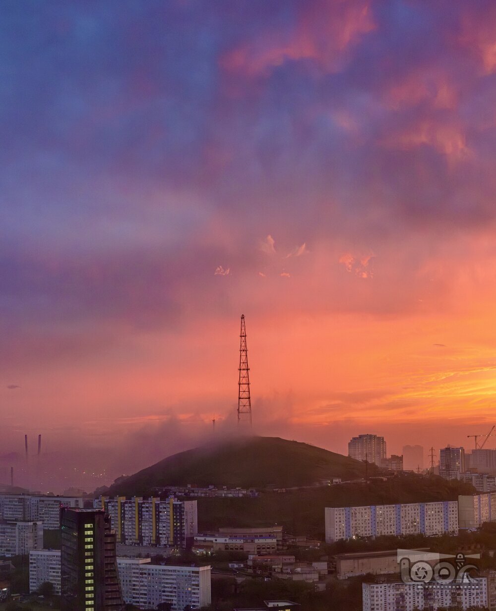 Радиовышка и закат: гармония города и природы
